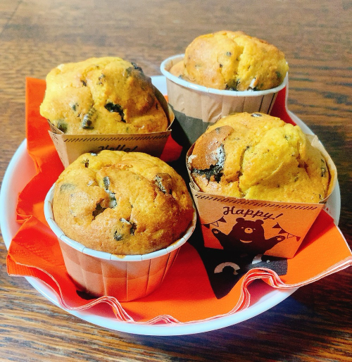最後はデザートに、カボチャの自然な甘さを活かしたマフィンを焼き上げました。