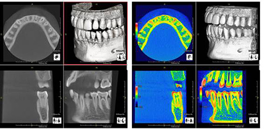 従来のレントゲンでは分からなかった骨の厚みや量、歯の根っこにある病巣や破折の状態、歯の神経の形や根幹の数、上顎洞の状態や顎関節の状態まで正確に診断することが可能となります。